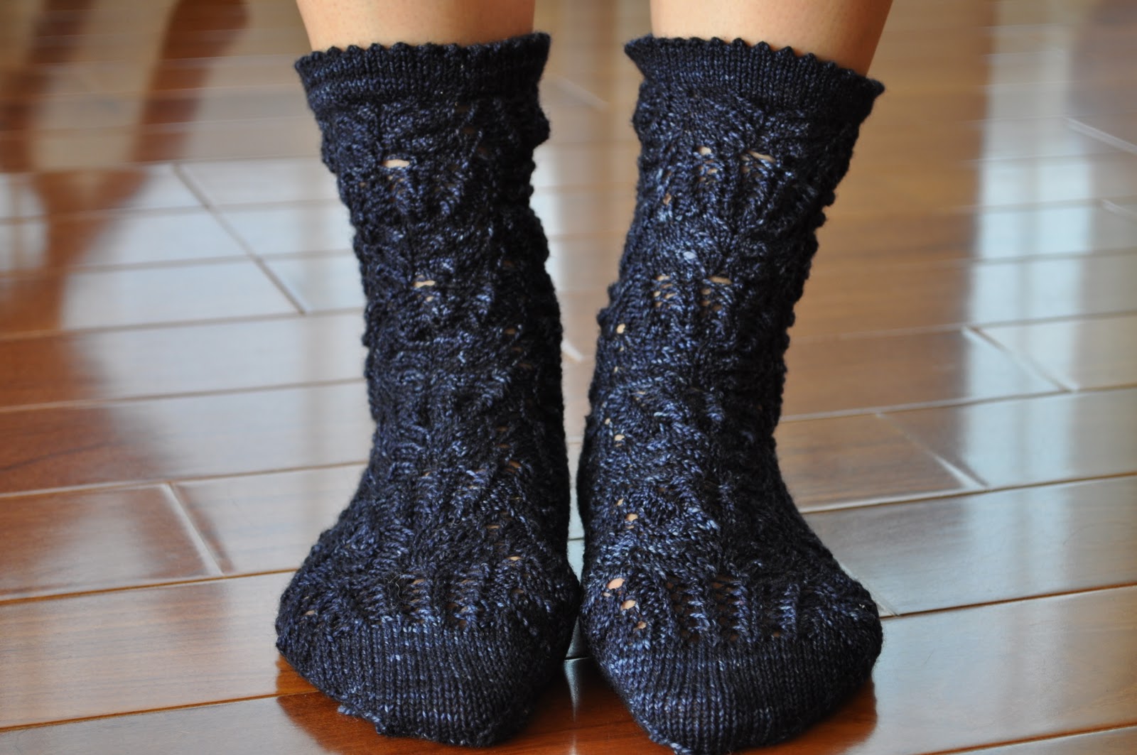 My sister modeled for me, because there is no way I can photograph my foot at a proper angle. It’s a lovely pattern and it’s free! Please follow this link.