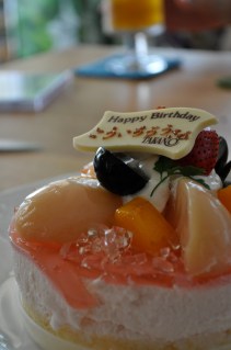 I went to my sister’s place this afternoon. Her husband played with my new camera and took many fantastic photos of everything. Start with his BD cake :) The color should look brighter than this.