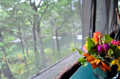 Our cabin was small, cozy and old. There were paintings on the wall, jigsaw puzzles, and diaries, left by people who stayed there before us. I spent one evening reading the diary entries in front of the fireplace. Because my roommate was from New Hampshire, she brought a whole lot of things from her home, including this beautiful bouquet from her garden.