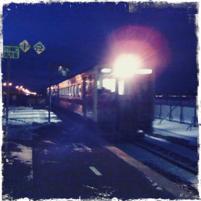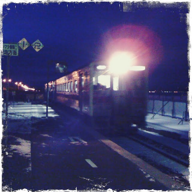 釧網本線 Kushiro-Abashiri Line Posted on December 19, 2010 Forgot to post this photo yesterday.北浜駅にやってきた、夜の釧網本線電車。一両です。 Share this: Click to share on X (Opens in new window) X Click to share on Facebook (Opens in new window) Facebook Click to share on Tumblr (Opens in new window) Tumblr Click to share on Pinterest (Opens in new window) Pinterest Like Loading... Related Categories: **ENGLISH**, **日本語**, 10. Travel