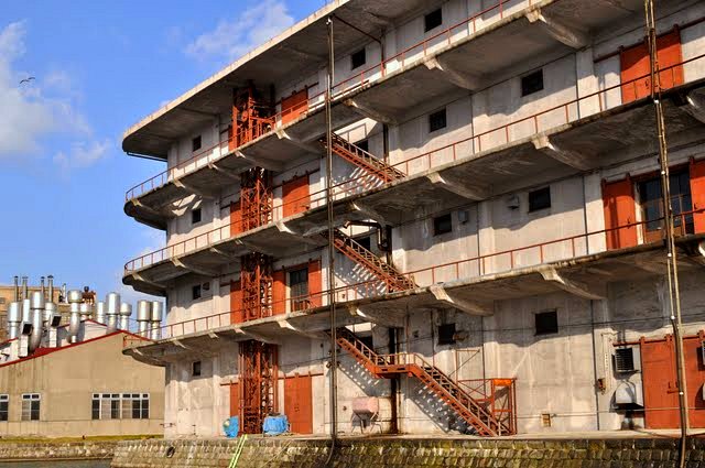 Probably one of my most favorite buildings in the town is below. Some sort of warehouse on the bay. Looks modern, totally practical, yet somehow details are beautiful, for example its colors. It also has 4 different types of floor-to-floor connections, which I found truly fascinating.