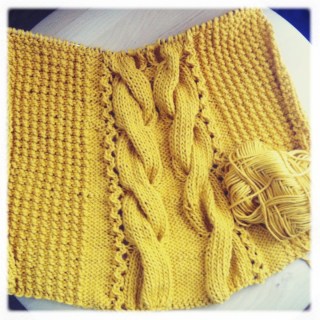 I am also half done with the yellow tank. It’s such a fun pattern to knit, so one panel was knit up quickly…. then I found…