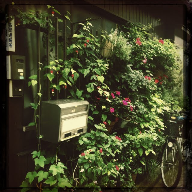 Here are something extra: some shots from this afternoon stroll in an old neighborhood not far from Akihabara (Tokyo). Lovely wall gardens.