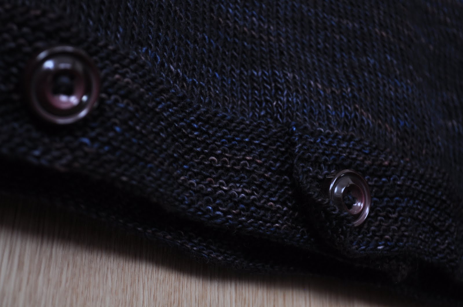 Yarn: Madelinetosh Tosh Merino Light in Mare (sprinkle of blue and brown in dark navy)