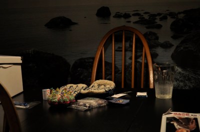 近頃気が付いたのですが、ミシンが新たに仲間入りした自宅は丸ごとアトリエそのもの。どこを振り返っても毛糸が、本が、布の切れ端が(つまり、散らかっているのですが。。。)。この頃、家に居るのが一番ワクワクして、仕事中も家に帰りたくなる。
