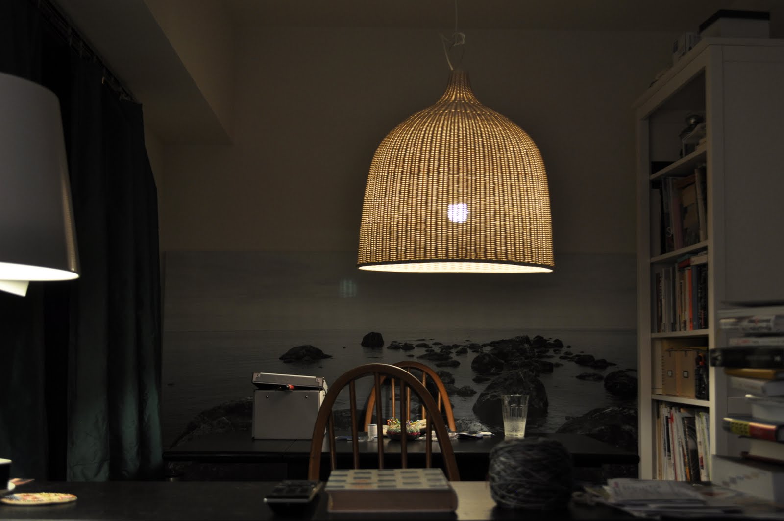 ちなみに巨大なペンダントライトは、来客が来る度に「邪魔!」と邪見にされます。 確かにあと5cmくらい上げた方が良いかもしれないけど、ペンダントライトとは食卓に低く下げるものなのだよ。
