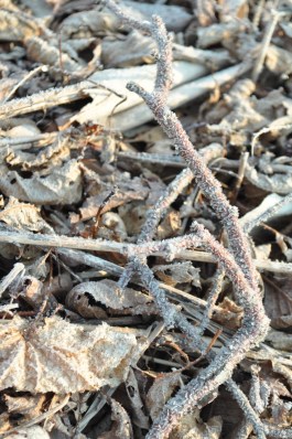 地面に落ちているもの全てが氷に覆われています。Everything was covered with frost, including a small twig like this.