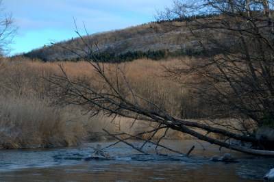 川岸はこんな感じで層になって凍っていて、これが段々と川の中心に向かって広がっていく。River banks were starting to freeze – in cascading layers.