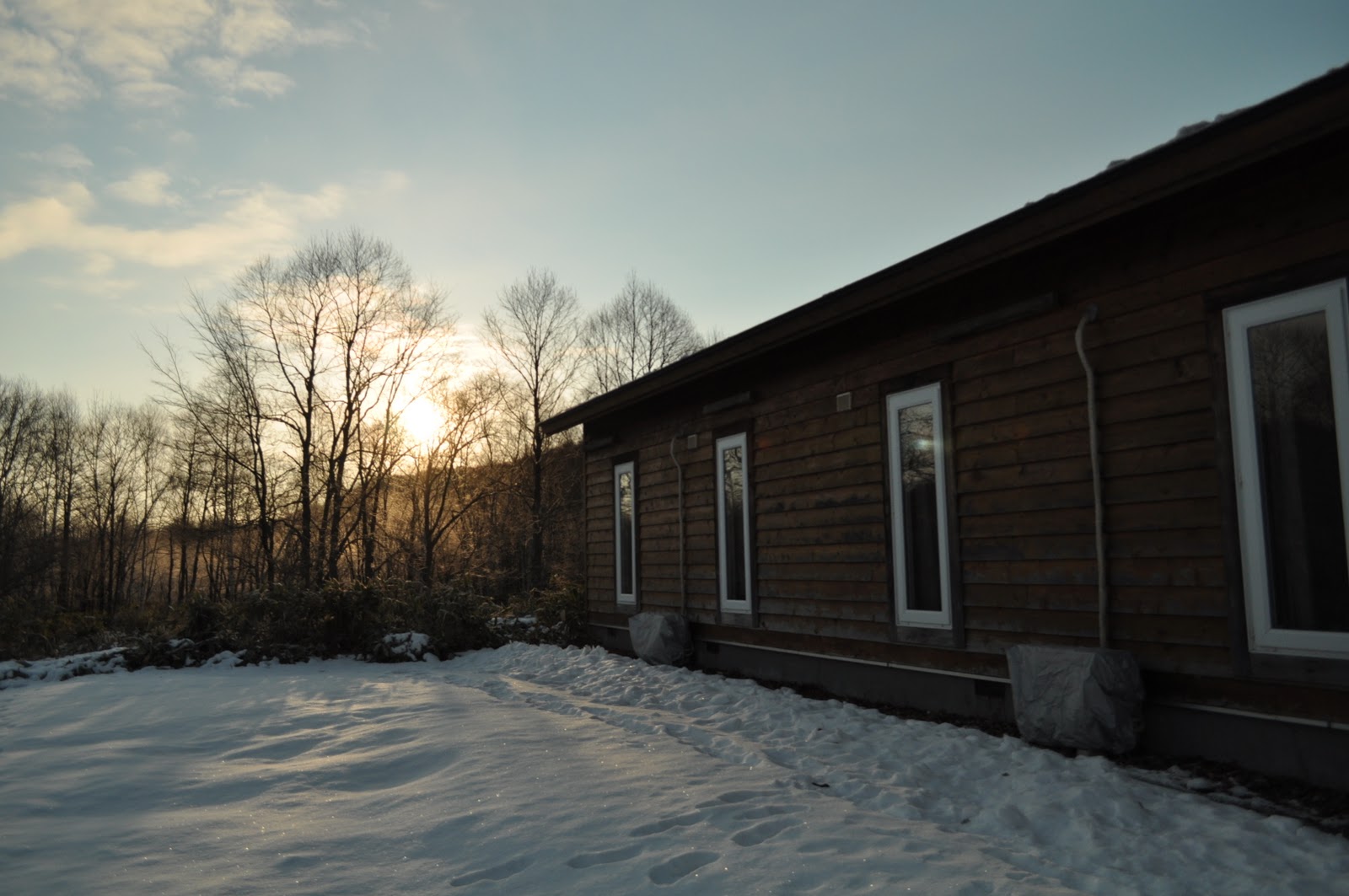 Blue Momentが本当に真青だったので、窓を開けて写真を撮りまくり。。。そして一瞬で身体が凍りつく。下は翌朝。この右側の棟に一人で泊まっていました(笑)。This is the building I was staying at – all by myself.