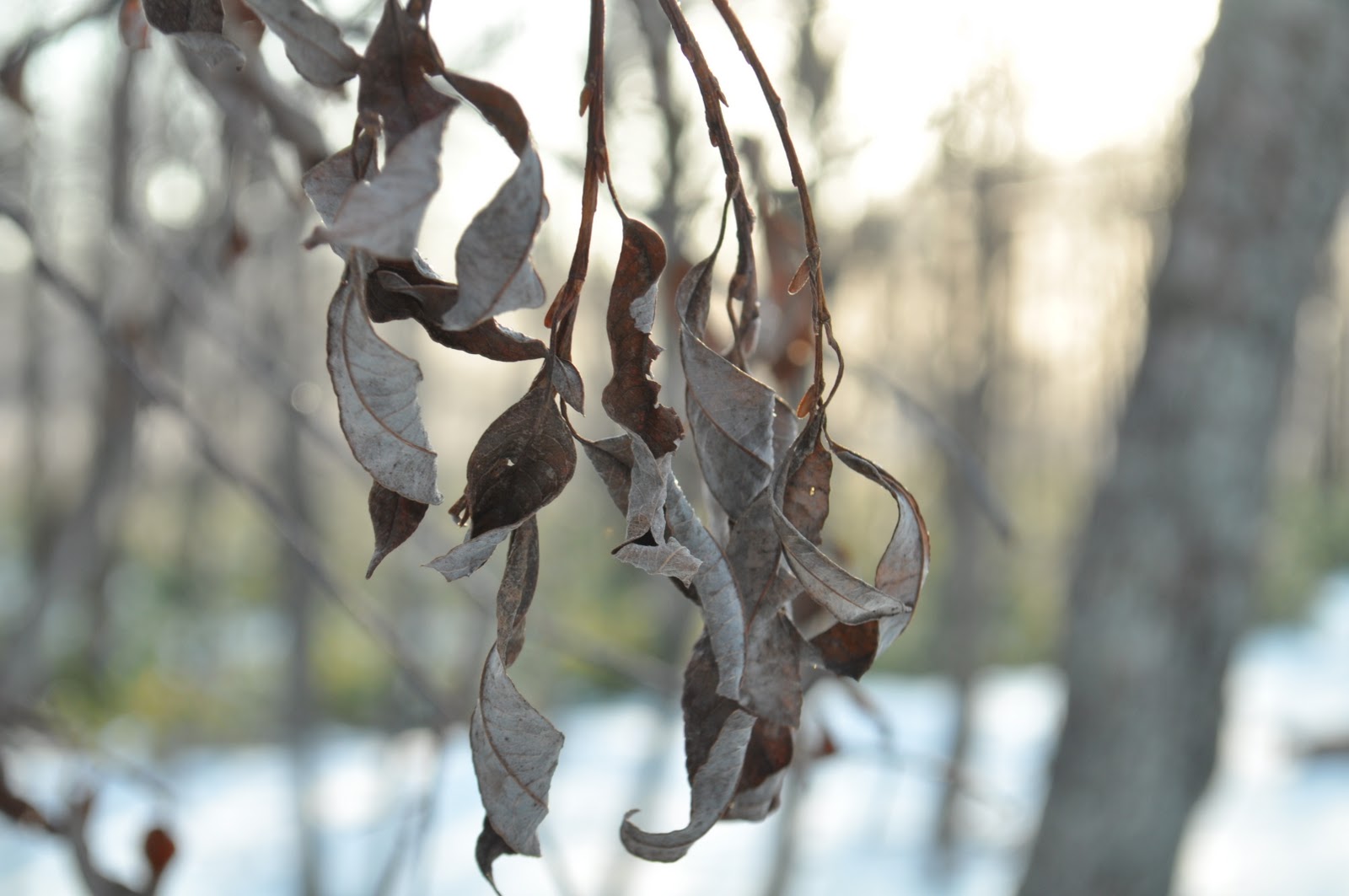 一面、こんな薄い枯葉色の世界。東京の濃い枯葉の色とは違う。Heavy snow was yet to come. Dry, whitish leaves are everywhere.