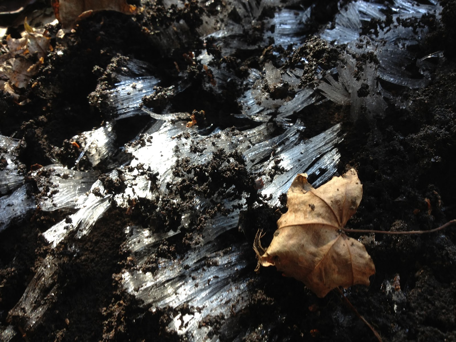 細い土道は霜が溶けてぐちゃぐちゃで、かなり歩きにくい。でも不思議な光景にテンション上がります。