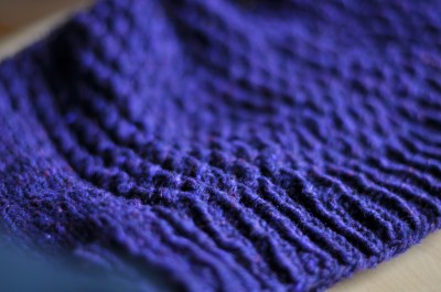 そして、セーターは胴がここまで編めてきました。This is the sweater I am currently knitting. The body is about 12 inches long so far.