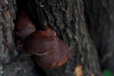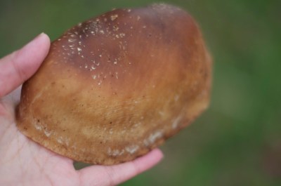 庭では椎茸も育てていて、ちょうど雨の後だったのでかなりニョキニョキ生えてきていました。こんな巨大なのまで。