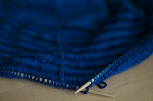 The other project on my needles is Daybreak. I bought the yarn, Madelinetosh Merino Light, particularly for this project. I love how it looks ocean-like.