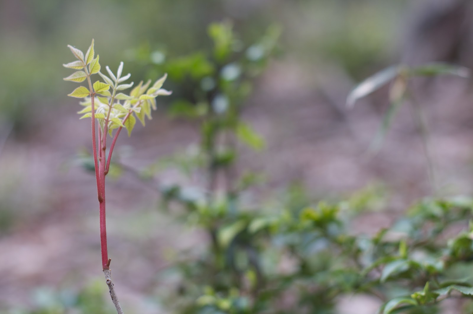 新しい芽が頭をのぞかせて、うーんと踏ん張って背伸びをしているところで。