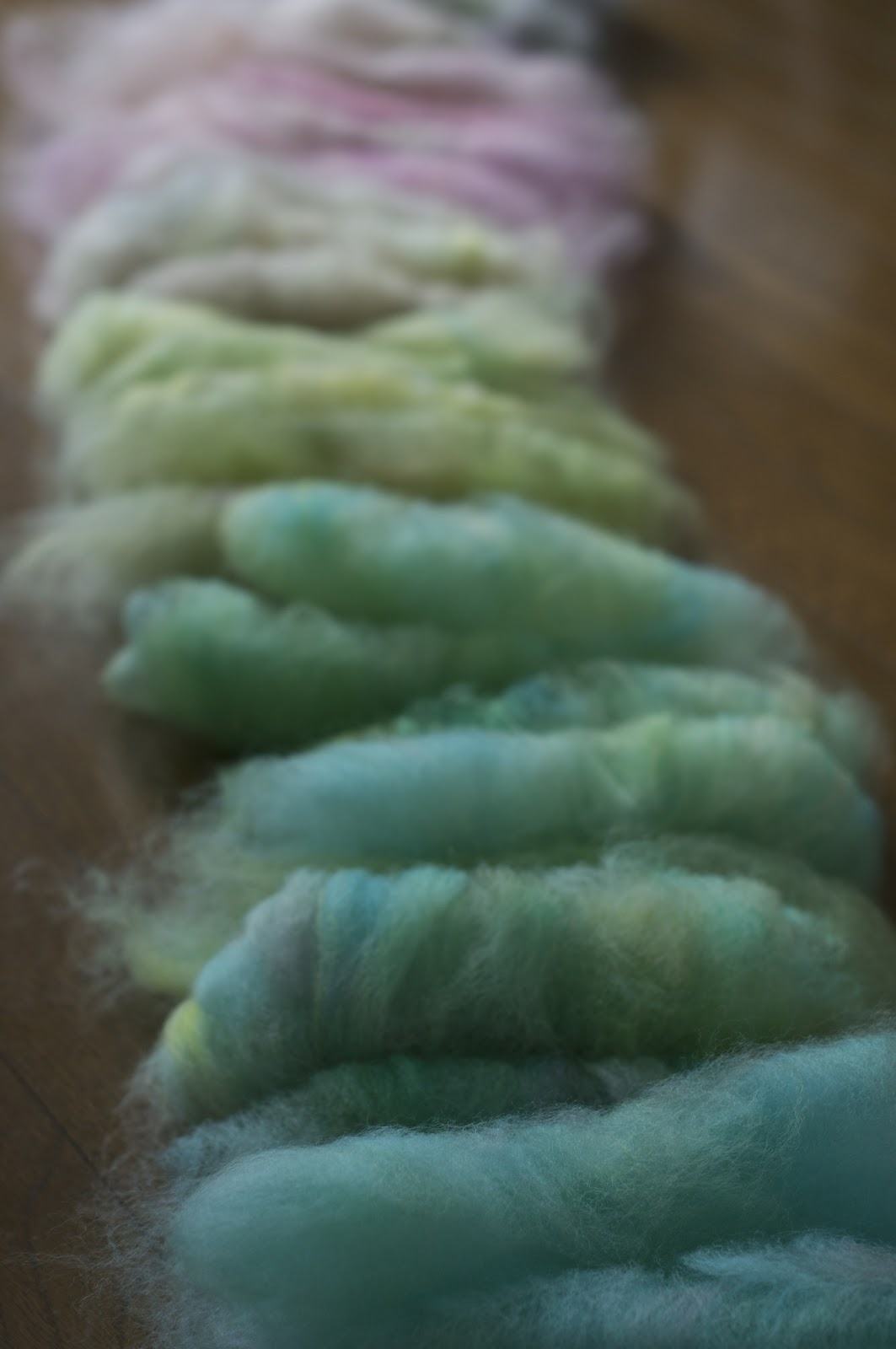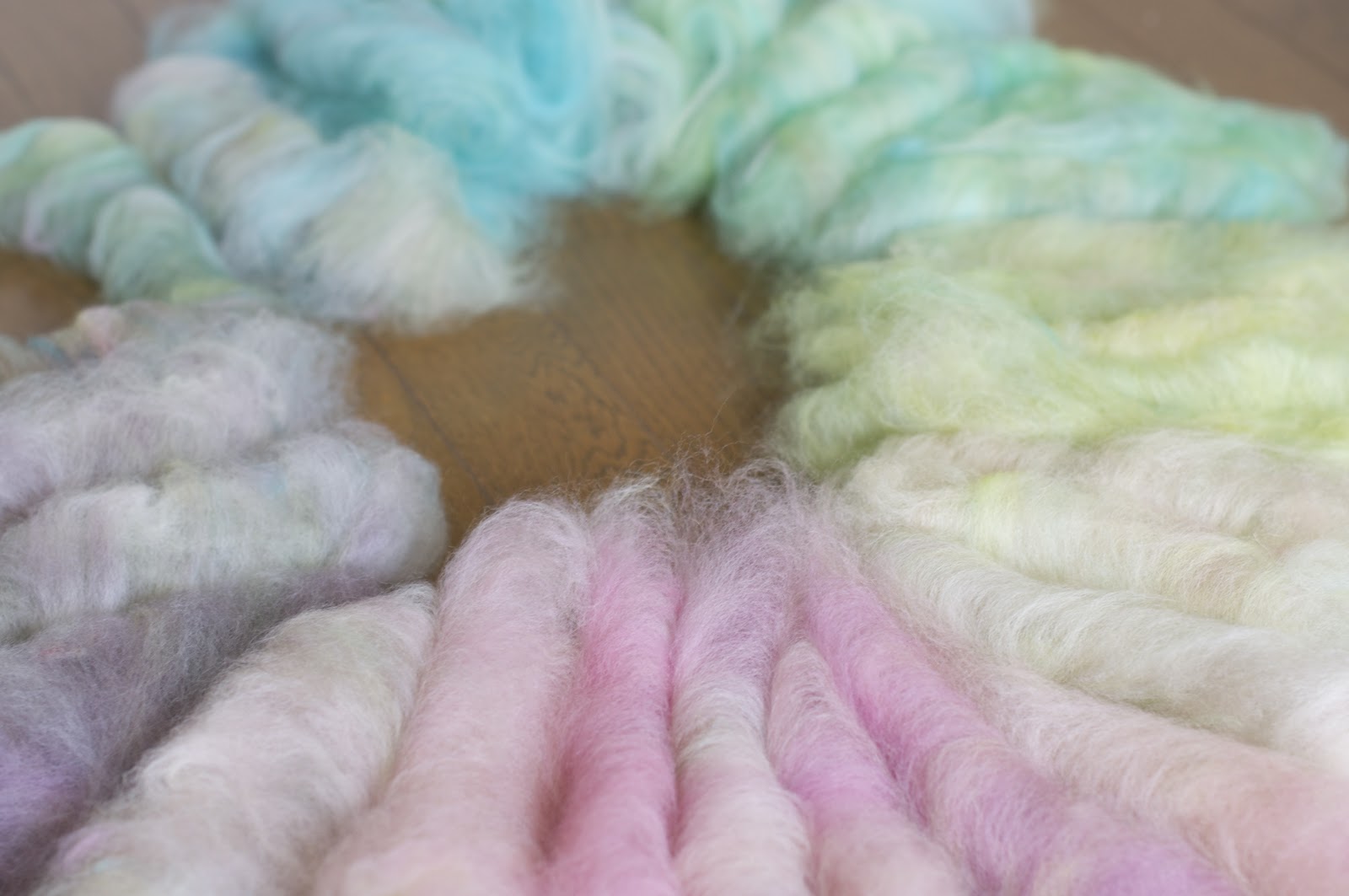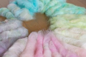 もとのこんな色だったのを、色別に分けて梳かして。