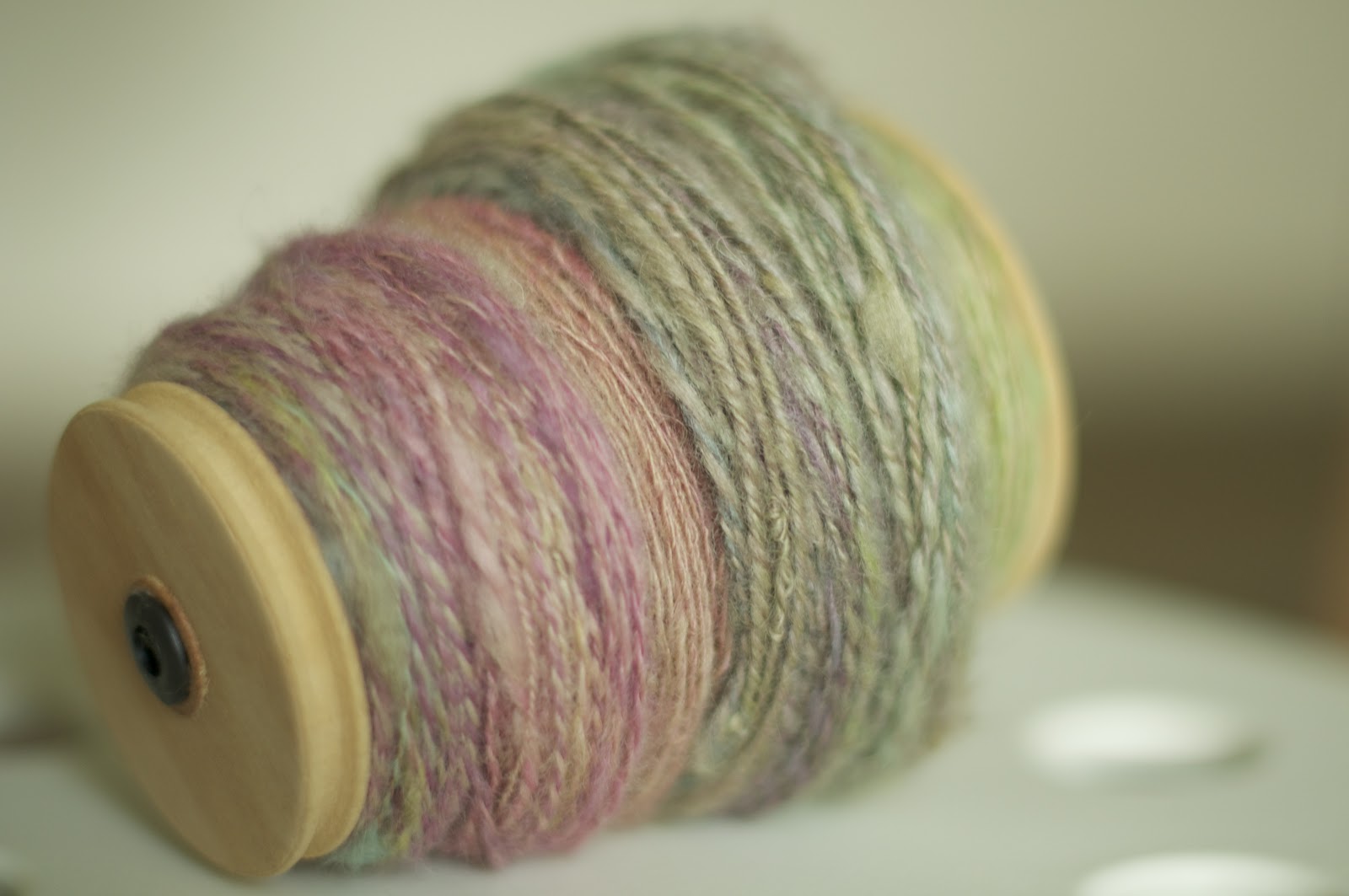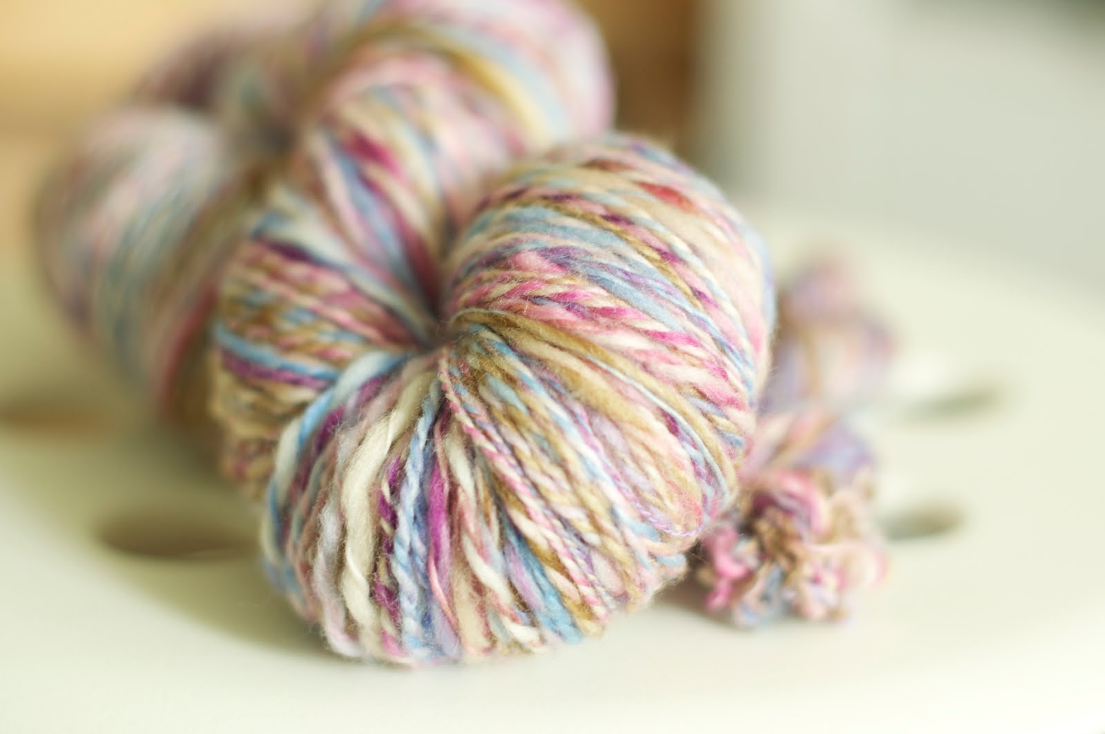 そして、脇に見えている小さい固まりは、Navajo Plyという3本取りで寄り合わせる方法を始めて試してみました。