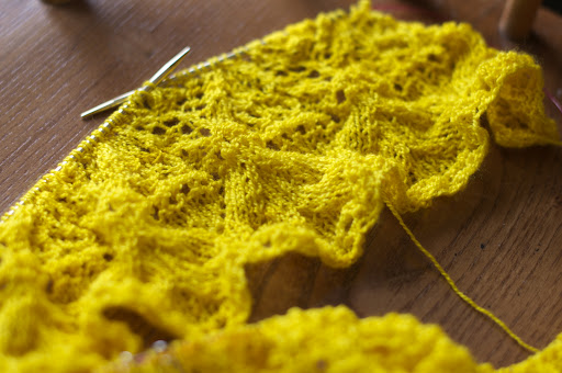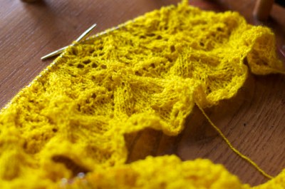 前回編んだSeigaihaはすっごく大変だったのですが(編み上がりは素晴らしいのでその甲斐はあるけど)、Damaskは編みやすいし覚えやすいし、そして新しいトリックはあるし、しかも出来てくるレースの美しさといったら!
